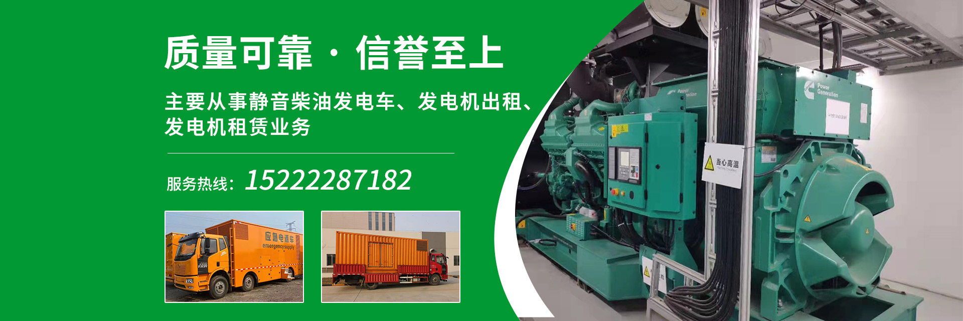 天津旭誠機械設備租賃有限公司是專業天津發電機租賃公司,發電車租賃公司,發電機出租公司。主要從事靜音柴油發電車、發電機出租、發電機租賃業務,現有大中小型發電機、發電車組數百臺,發電機組功率從50KW-2000KW均可提供,隨時為客戶提供不同功率機組自備發電業務,電力供應保障充足,是各項工地施工、消防備用、企業避峰、短期自備發電的優選。業務覆蓋京津冀全域。